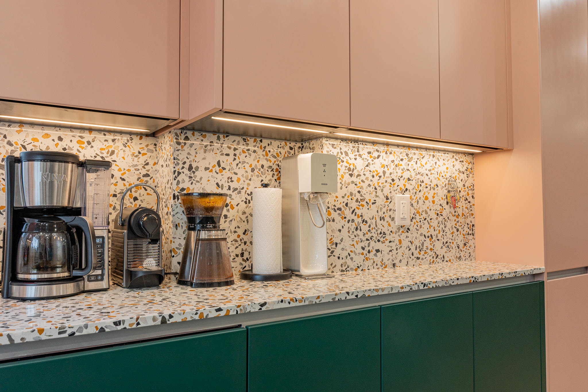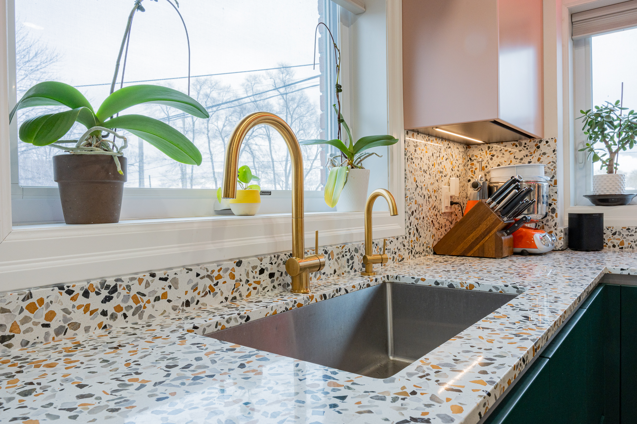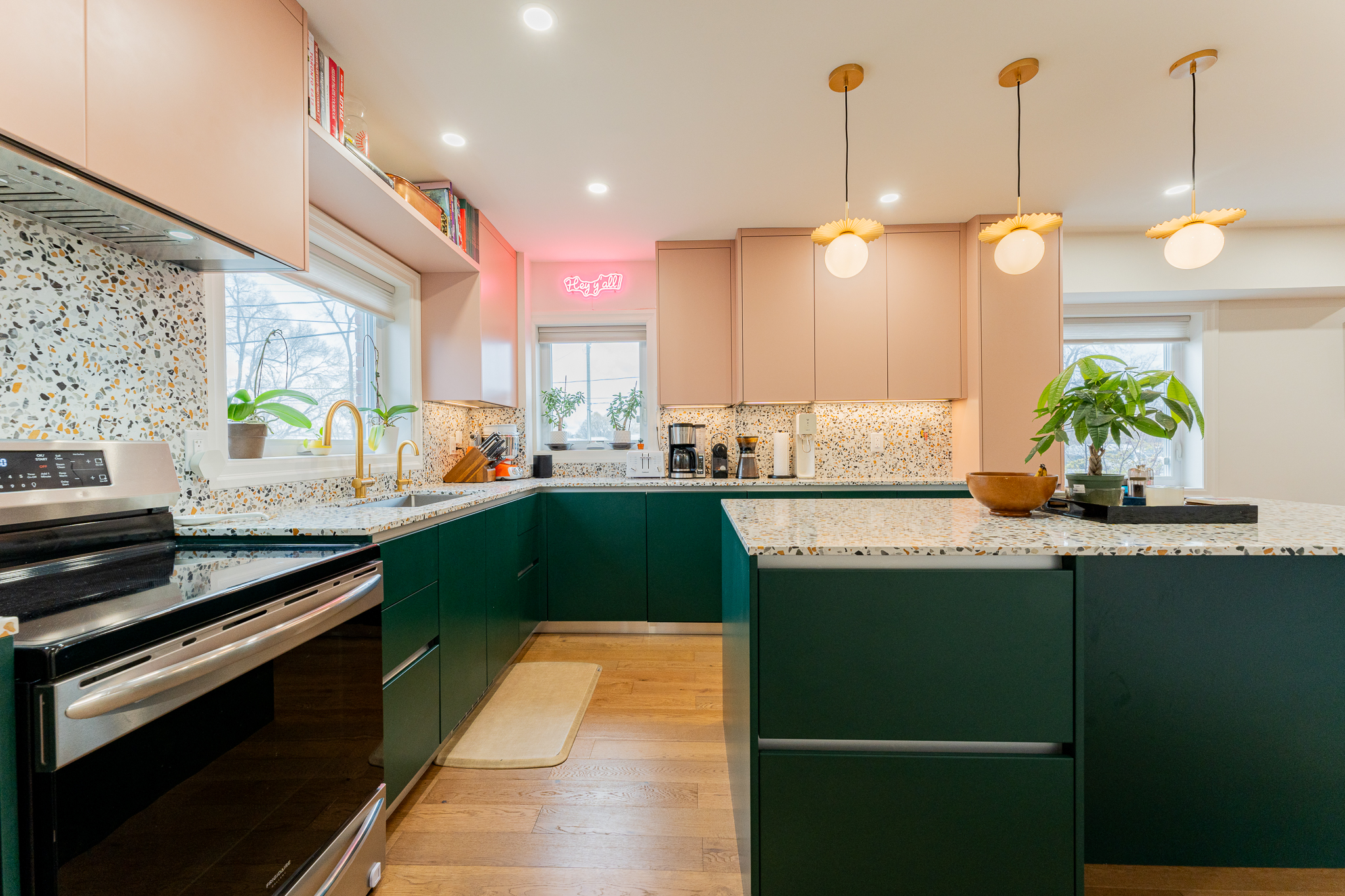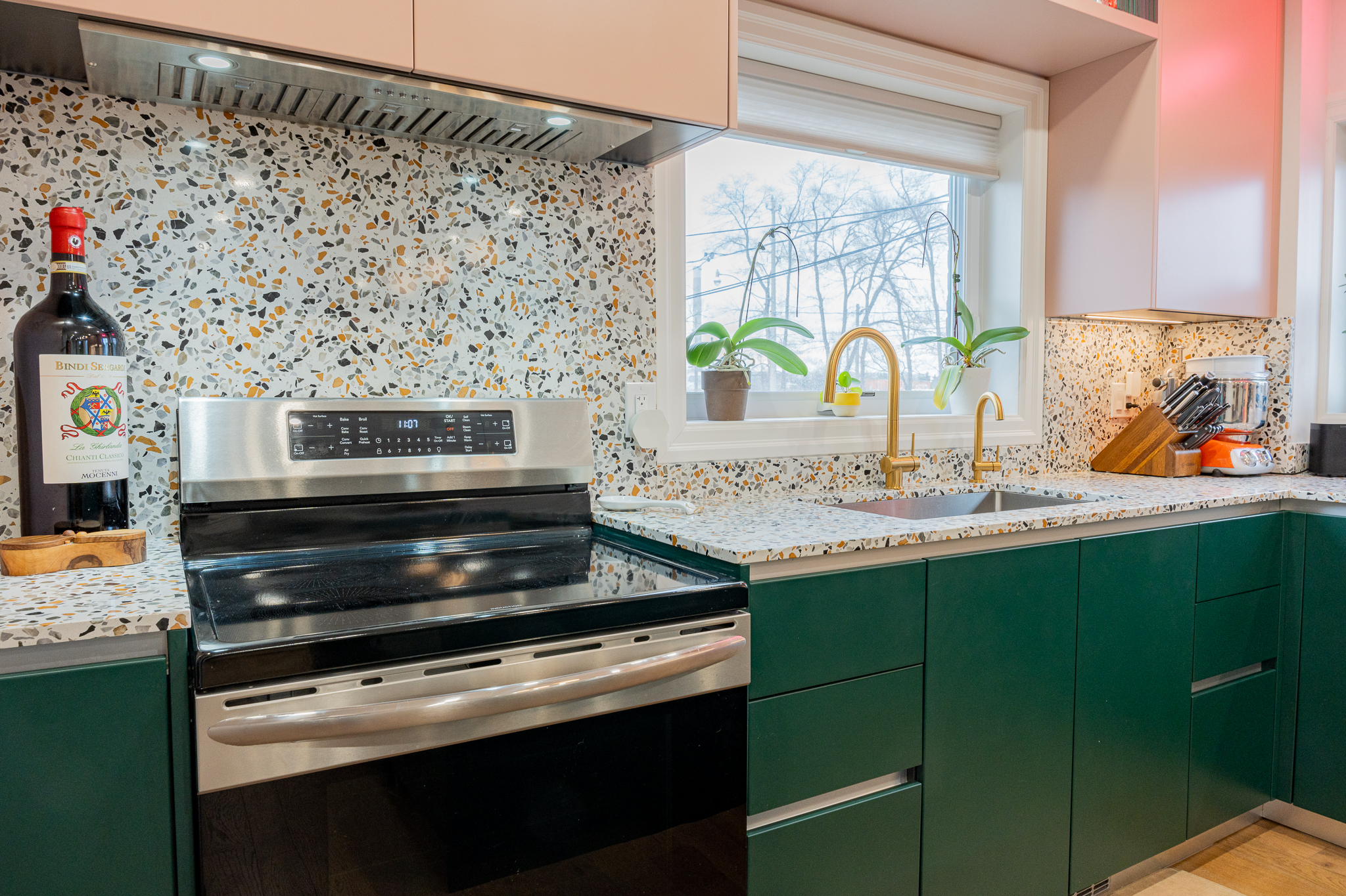 This main floor and basement renovation highlights Norseman Construction’s ability to completely transform a home with thoughtful design and quality craftsmanship. The layout was reimagined to improve flow, functionality, and everyday living. At the heart of the main floor, the kitchen makes a bold yet balanced statement. A deep green island, soft blush cabinetry, and terrazzo countertops bring texture and personality, while gold accents and modern lighting add a refined touch. The result is a space that feels both distinctive and highly functional. The basement was redesigned as a seamless extension of the home — bright, welcoming, and intentionally planned to maximize comfort and usability. This project reflects our commitment to creating spaces that are tailored, timeless, and built around the way our clients live.