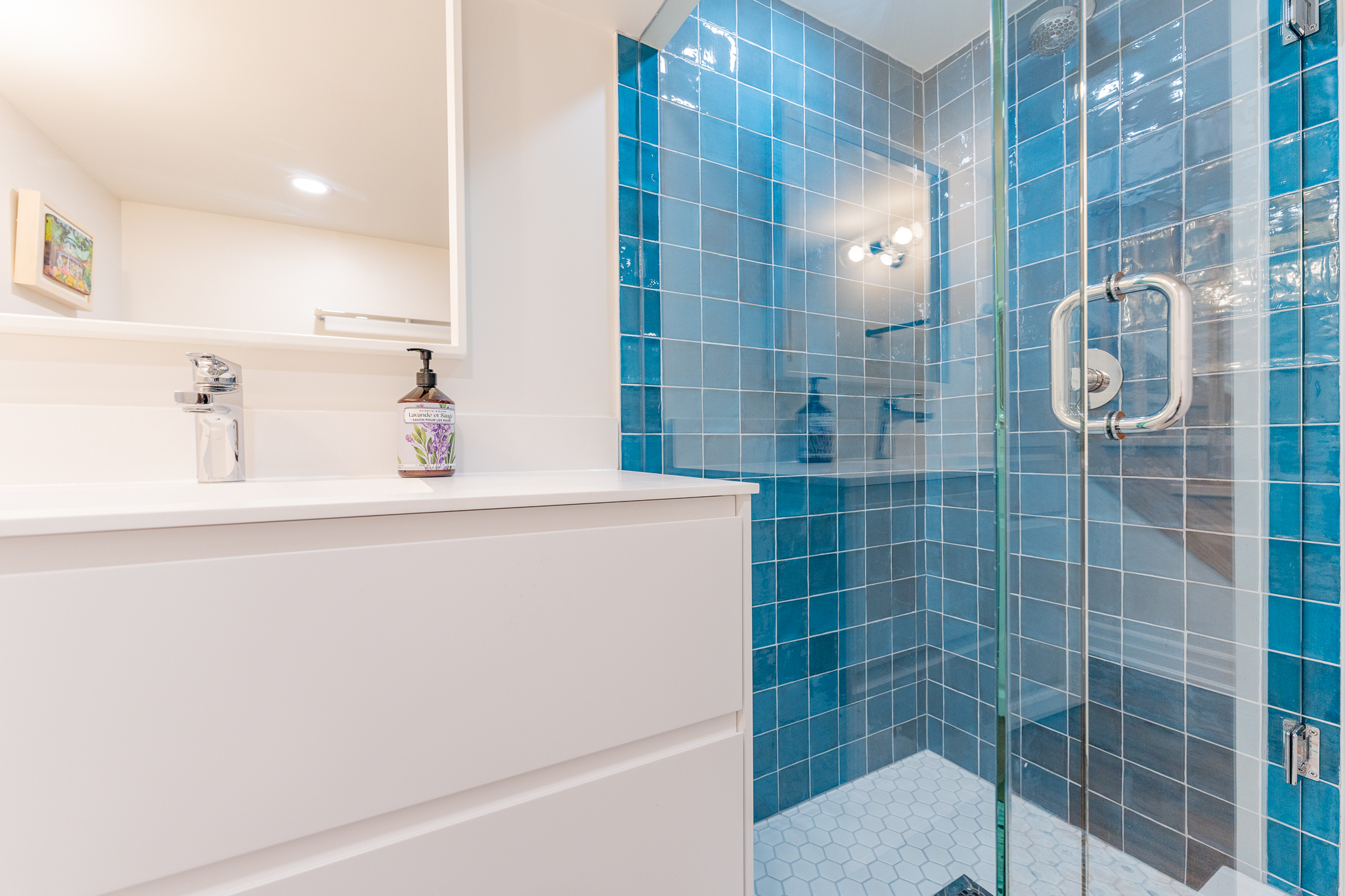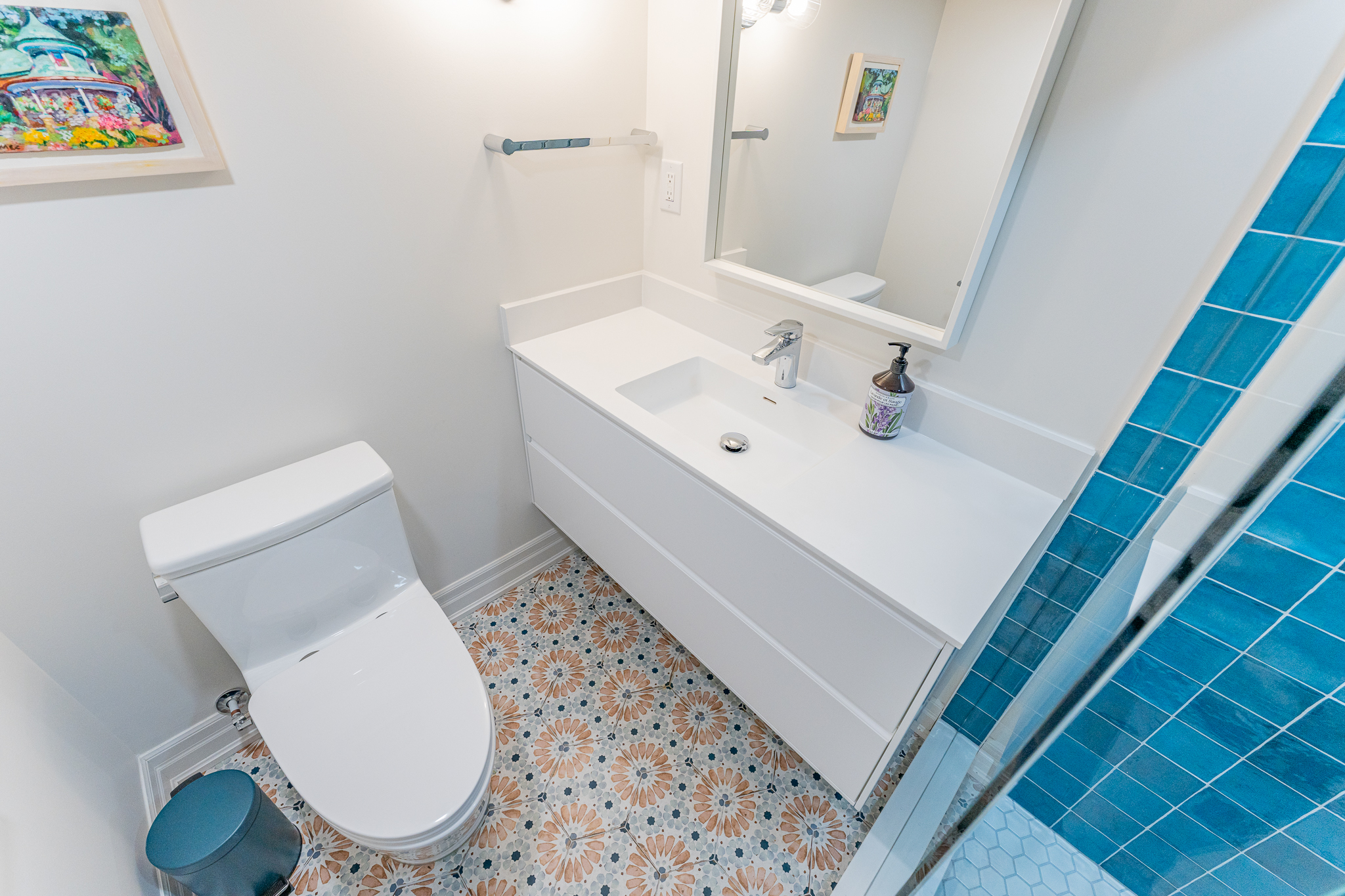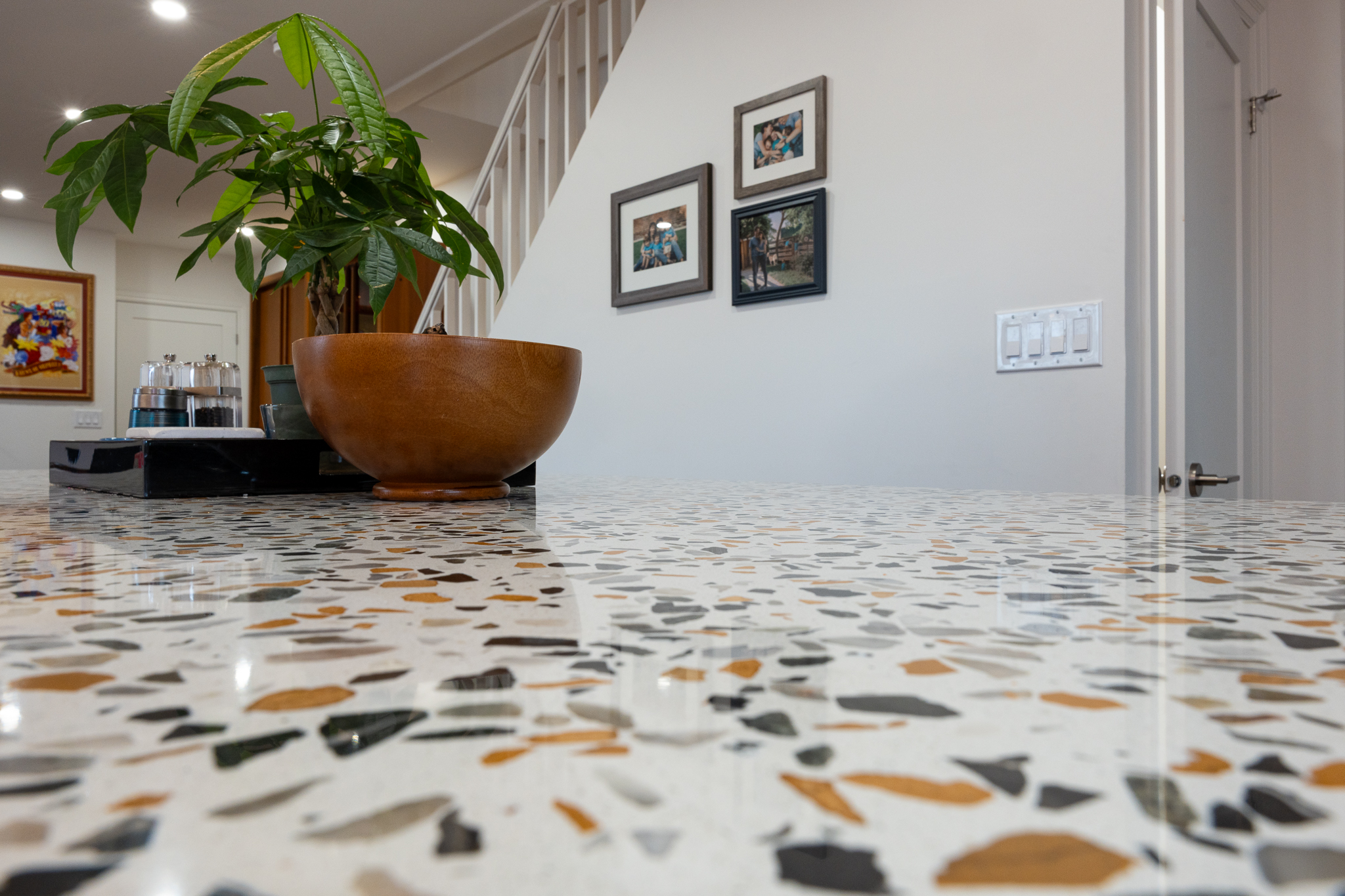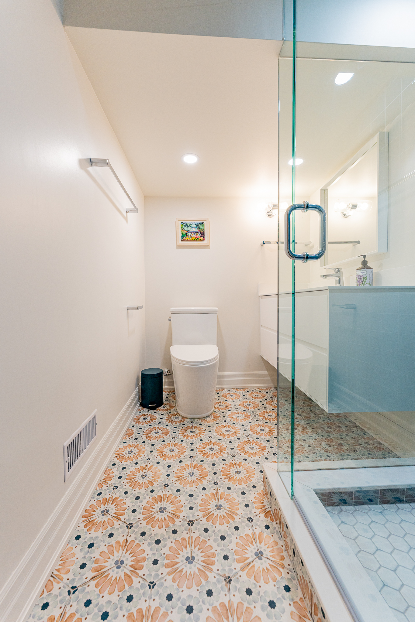 This main floor and basement renovation highlights Norseman Construction’s ability to completely transform a home with thoughtful design and quality craftsmanship. The layout was reimagined to improve flow, functionality, and everyday living. At the heart of the main floor, the kitchen makes a bold yet balanced statement. A deep green island, soft blush cabinetry, and terrazzo countertops bring texture and personality, while gold accents and modern lighting add a refined touch. The result is a space that feels both distinctive and highly functional. The basement was redesigned as a seamless extension of the home — bright, welcoming, and intentionally planned to maximize comfort and usability. This project reflects our commitment to creating spaces that are tailored, timeless, and built around the way our clients live.